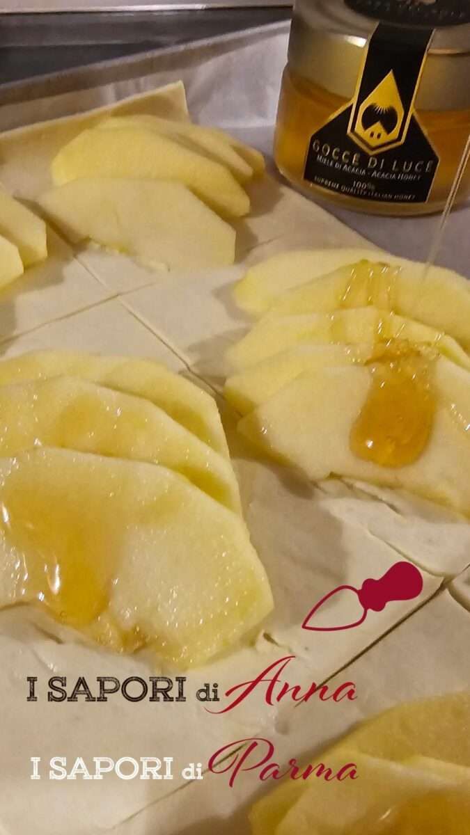 Nelle sfogliatine di mele, il miele non solo dolcifica, ma aiuta anche a creare una leggera caramellatura in superficie.